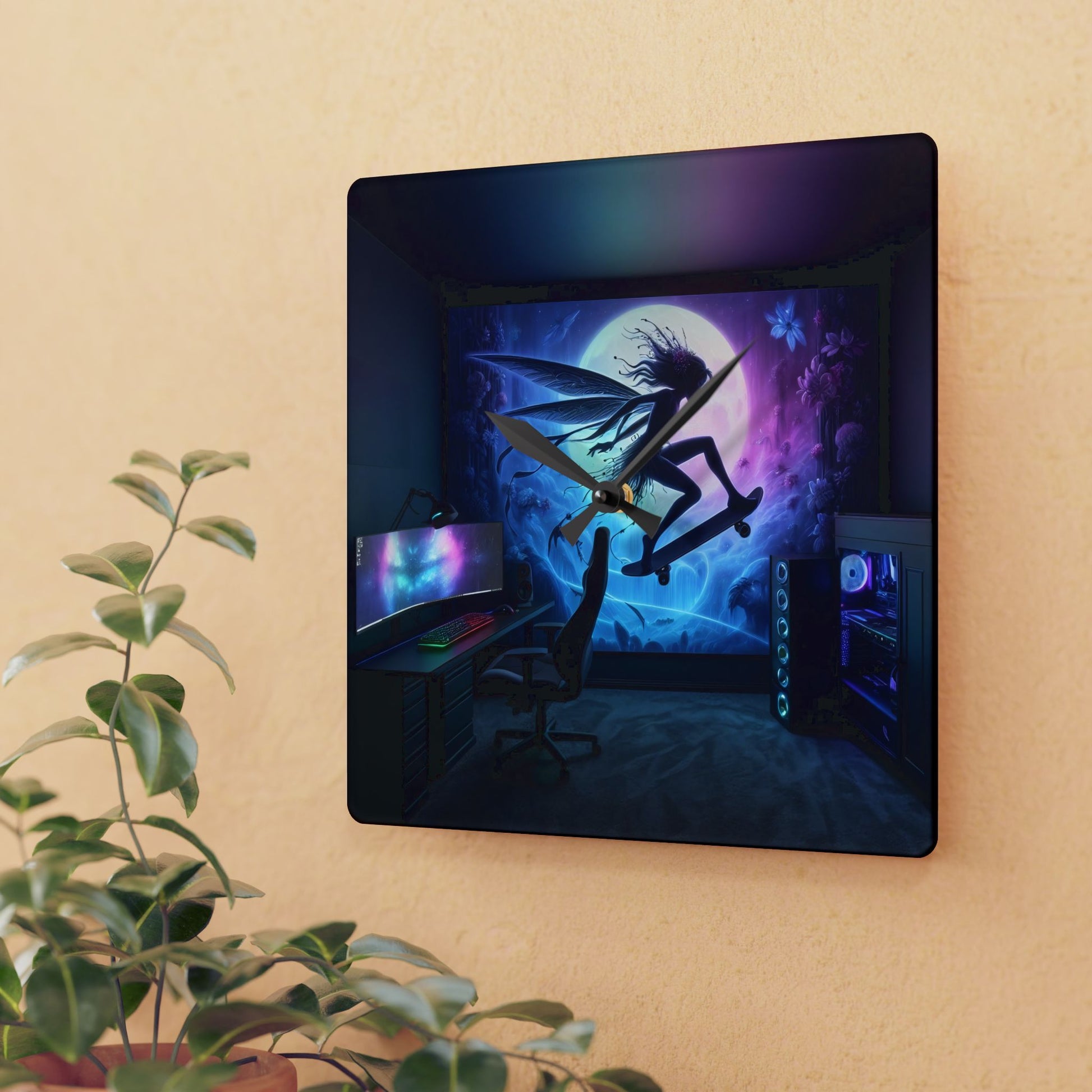 ساعة حائط | أكريليك | مستديرة أو مربعة | فانتازيا الجنيات الهوائية | سيلف