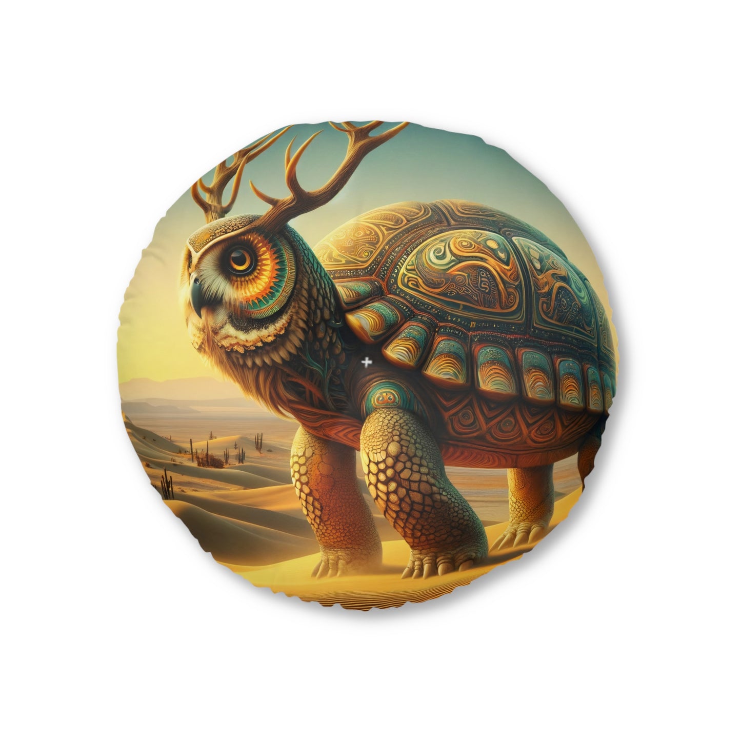 Almohada | Cojín de suelo | Con mechones | Redondo | Fantasía Mítica | Bestia Quimérica | Tortuga Búho