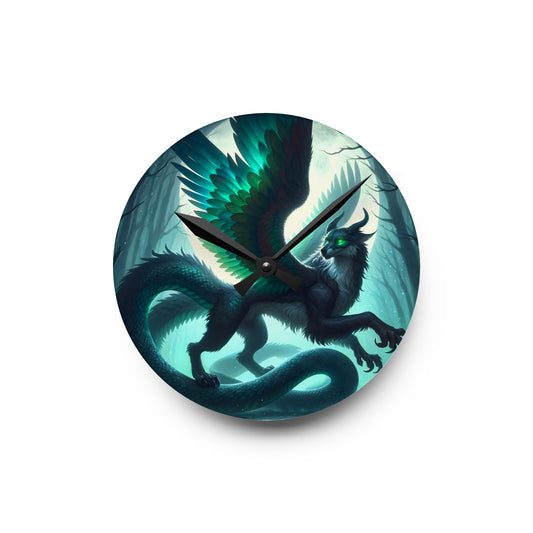 Jam Dinding | Akrilik | Bulat atau Kotak | Fantasi Naga Bersayap | Makhluk Mistis