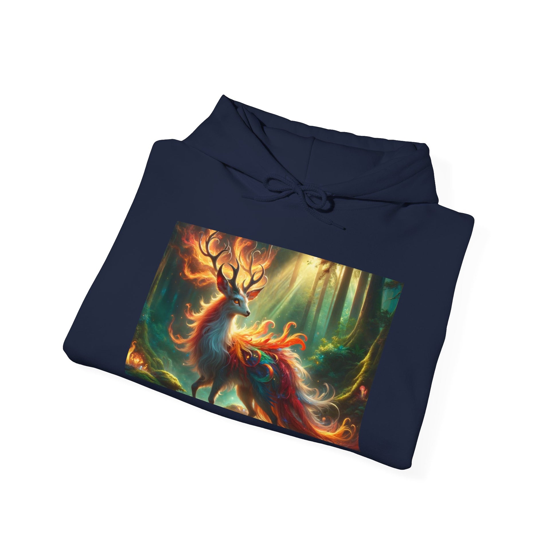 Felpa con cappuccio | Unisex | Felpa con cappuccio | Misto pesante | Mitologia Fantastica | Cervo di Fuoco