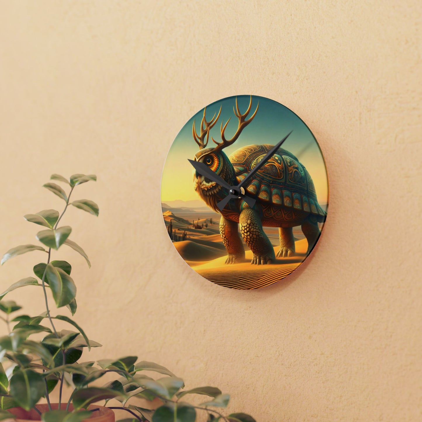 벽시계 | 아크릴 | 원형 또는 사각형 | 판타지 신화 | 키린-카메 | 사막 수호자