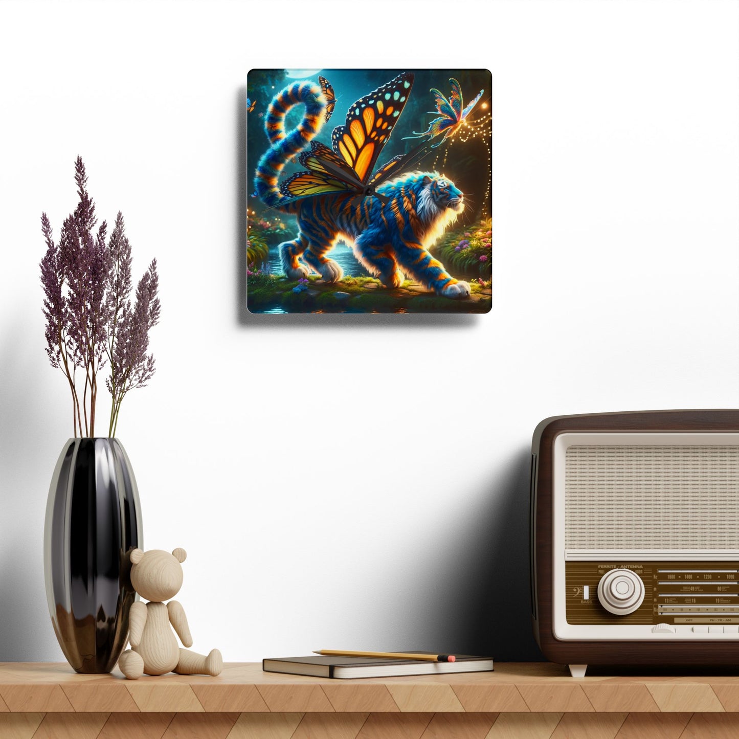 Wandklok | Acryl | Rond of vierkant | Magisch Realisme | Vlinder Tijger