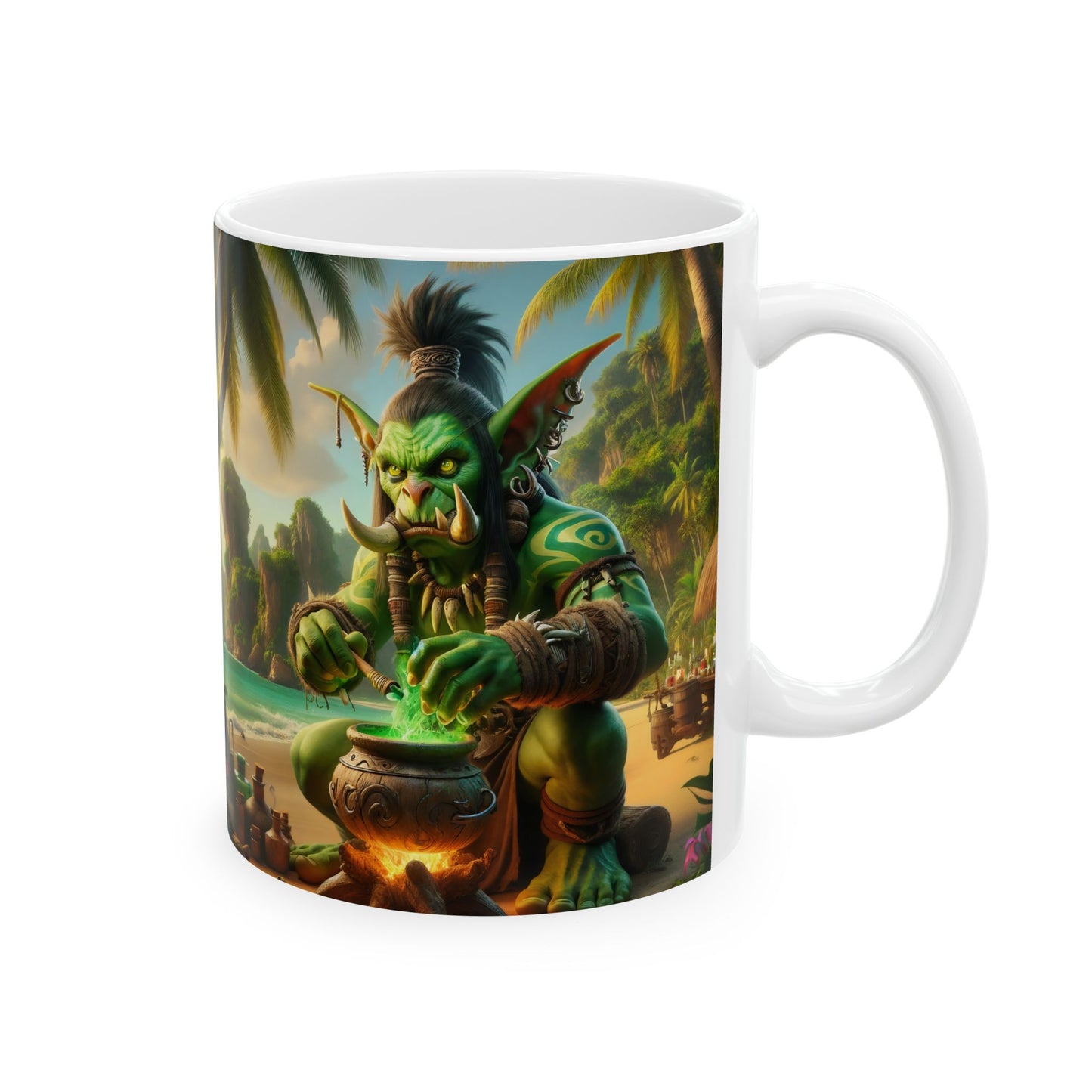 Produktet viser en ork sjaman som brygger magisk eliksir inspirert av tropisk fantasy. Opplev den primitive trolldomskunsten fra eksotiske strender. Kjøp nå!