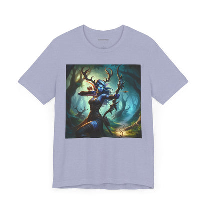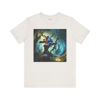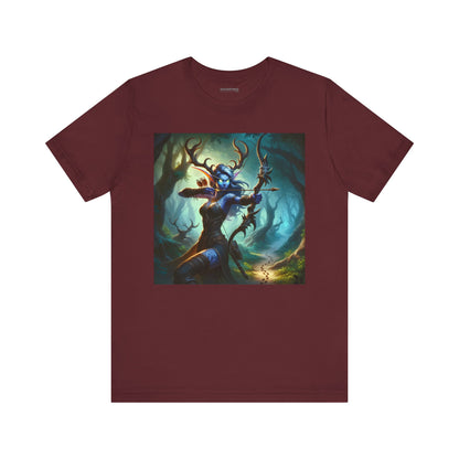 T-skjorte | Unisex | Jersey-T-skjorte | Kort erme | Mystisk Skogalv | Naturmagi | Bueskytter