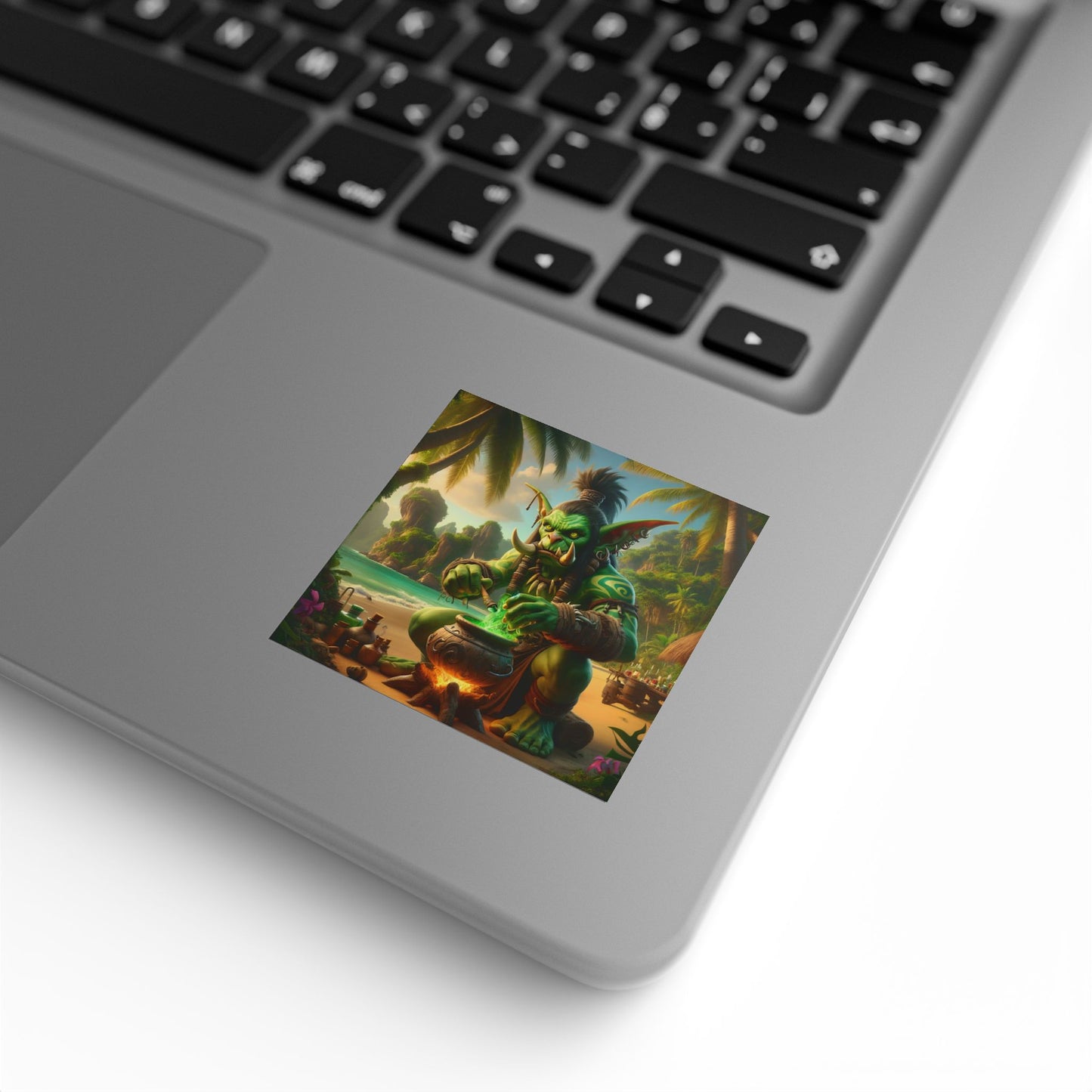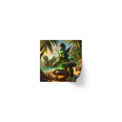 Produkten visar en orkschaman som brygger magiska drycker. Upptäck mystiska trollkonster från tropiska övärlden för din samling. Köp denna unika fantasy-konst idag!