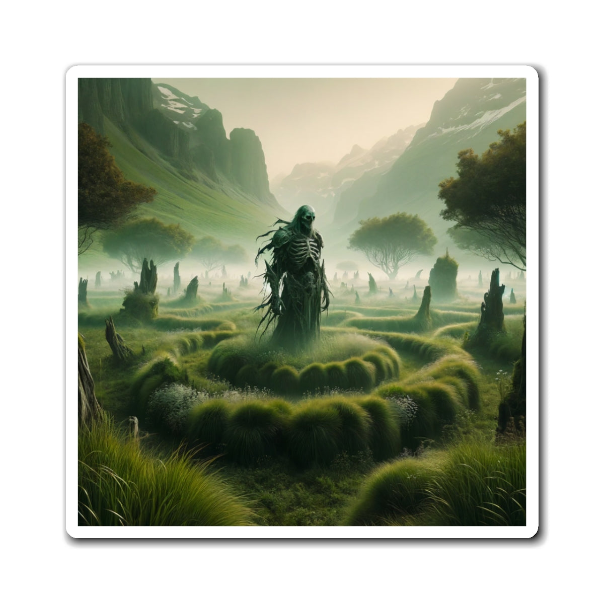 Bu ürün, sisli bir mezarlıkta duran ölüm meleği görüntüsünden ilham alıyor. Kuzey mitolojisi ve Kelt öteki dünya geleneklerini birleştiren etkileyici fantastik duvar sanatı satın alın.